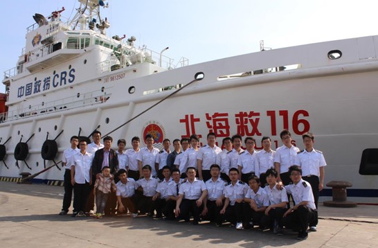 在大连基地负责人的带领下,同学们首先对基地救助指挥室和应急装备库进行了参观。这里的装备可谓是丰富多样,课本上所学的各类救助设备以及潜水设备在这里让同学得到更直观的了解。基地负责人对每一个救助装备进行了耐心细致的讲解,例如空压机,潜水服,水下摄像设备等,并对同学提出的问题进行了认真的回答,大家收益颇丰。接下来由在救助船上工作的海大学长带领,同学们对北海救116进行了系统的参观。