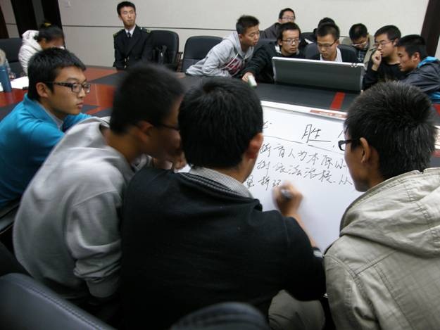 本场比赛由部分中队干部主持和裁决,栗占宝指导员到场监督。比赛双方是我院机械一班和船舶二班的同学们,双方均有五位参赛选手进行应答。首先由主持人向双方提问,由双方分别在题板上作答,每方作答时间一致,然后向评委亮出答案,由评委裁定分数。双方发挥稳定,战局焦灼,比分僵持不下。第二轮是抢答环节,双方选手举手抢答,抢答错误扣掉相应分数,比赛气氛达到高潮,双方选手思维敏捷,场下观众紧张观战,都为本班选手捏了把汗最后,机械一班以165:140的比分赢得比赛,进入到下一轮的比拼。