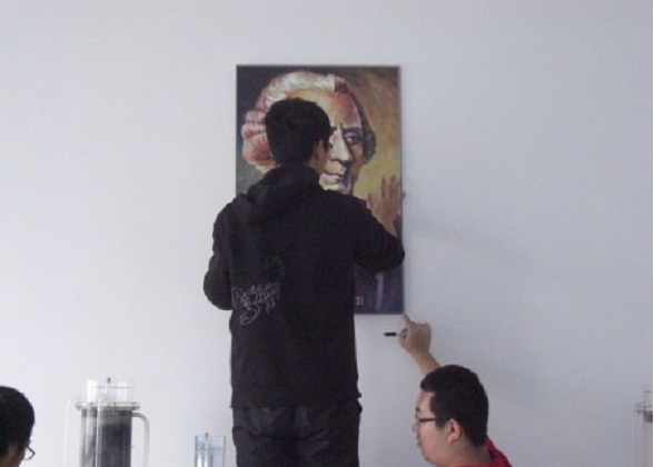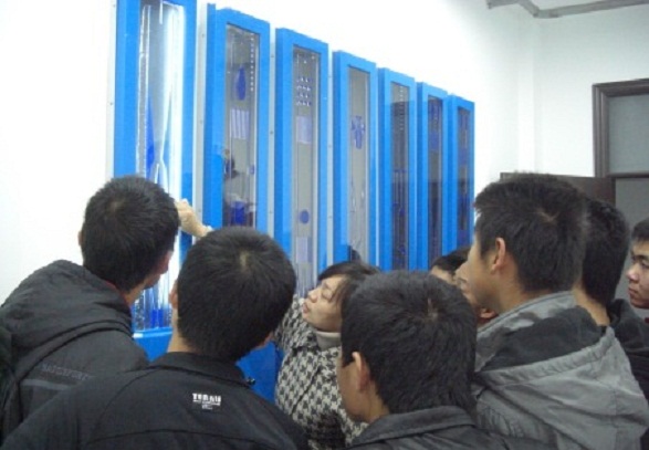 同学们首先来到了远航楼210教室,这是一间长期没有使用的计算机教室,窗台上落满灰尘,桌子上随意的散落着空饮料瓶……在苏老师的组织下,同学们有序的展开了工作:有的擦黑板,有的扫地,拖地,还有的摆放,对齐课桌。很快,曾经脏乱的教室变得井井有条,纤尘不染。接着同学们又转战机电楼520教室,这是一间还未启用的船舶实验室,大家要做的就是将名人画像和实验仪器操作规程挂在墙上。同学们很快投入了战斗,通过合作将画板粘到了指定位置。在同学们整理的期间,苏老师还给大家演示了各种实验,增加了大家对专业知识的兴趣。