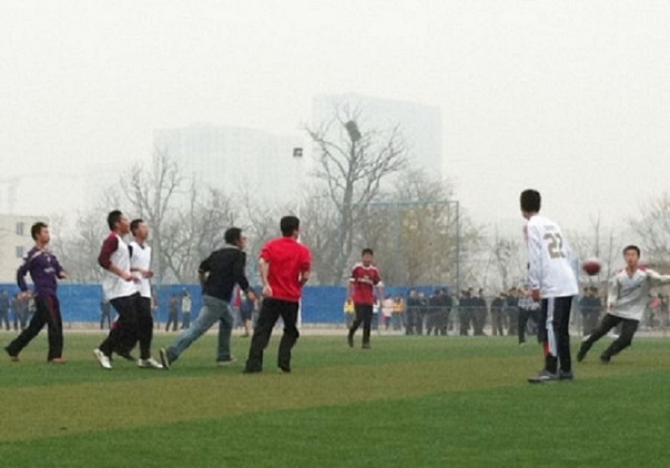 2011中队土木工程和机械制造及自动化两个专业赶在寒流来临之前在东山足球场进行了一场历时两个半小时的足球友谊赛。