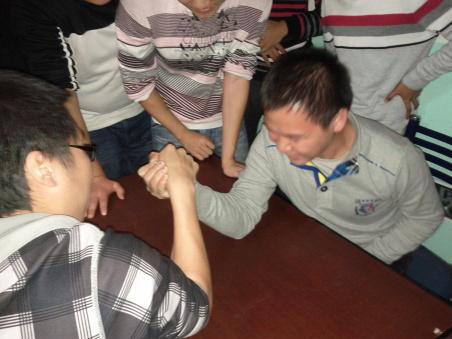 掰手腕大赛作为班级娱乐活动的一部分,真实生动地体现了船舶同学积极进取的决心与拼搏奋起的勇气,展现了良好的班级精神风貌,同时反应了2011中队勇于争先不甘落后的气概。