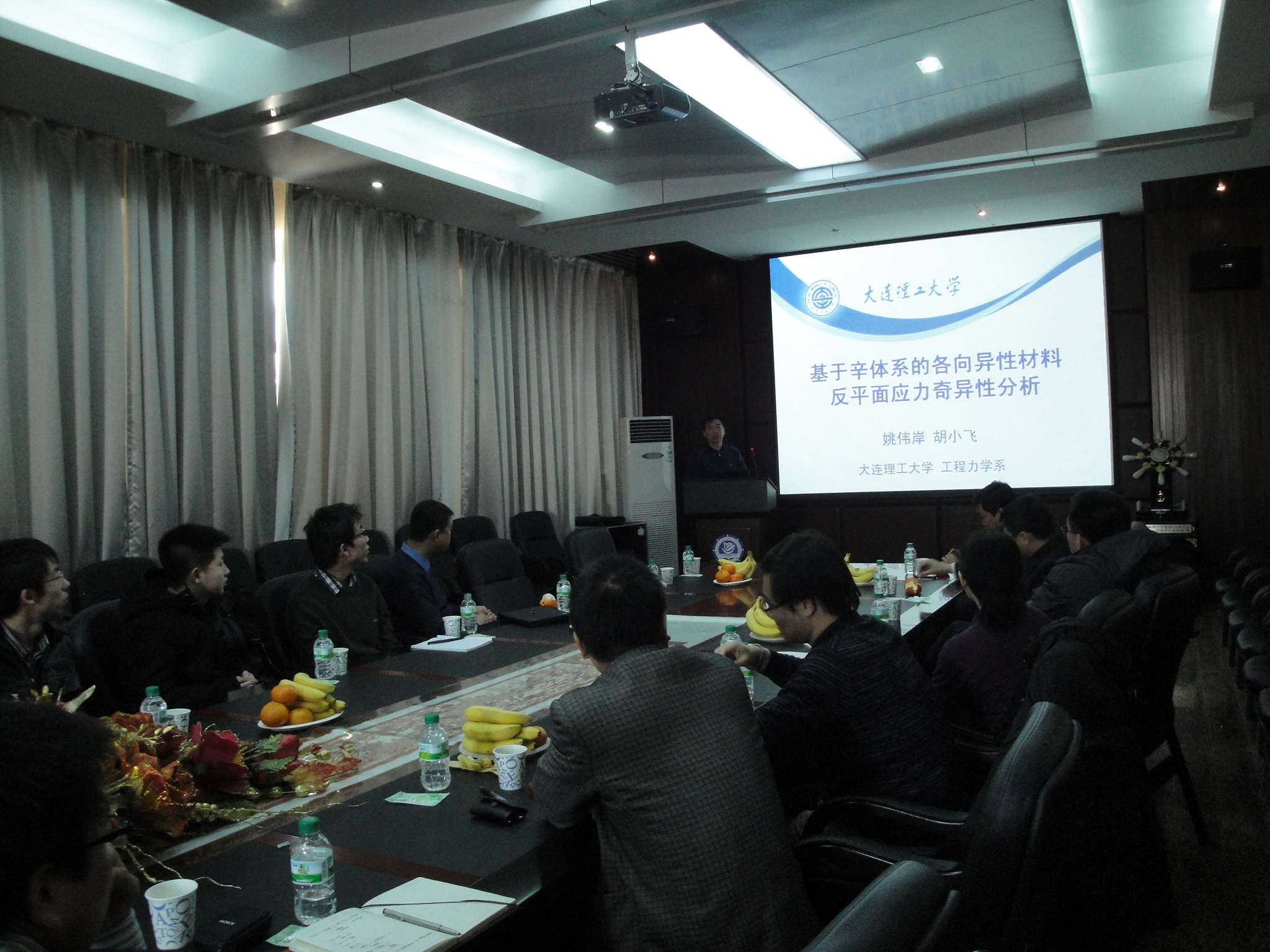 12月11日是应用力学新方法新发展讨论专场,报告会由郑长良教授主持,首先由姚伟岸教授就辛对偶体系在应用力学中的应用和发展做了名为“于辛体系的各向异性材料反平面应力奇异性分析”的学术报告,姚伟岸教授是2010年和2011年国家自然科学基金数理学部基金评审专家(会评),聆听其在计算固体力学方面的研究成果和经验,对于申请数理学部计算固体力学方向的自然科学基金起到引导作用。然后由阎军副教授作了名为“超轻金属结构与材料性能多尺度分析”的报告,新材料新技术的发展与应用立刻引起在座师生的广泛兴趣。随后教育部力学教学指导委员会特聘专家杨春秋教授,从工程结构优化方面的学术报告优化方法的发展讲起,逐步深入为大家剥去优化分析的神秘面纱,并通过工程实际问题探讨截面优化、几何优化和拓扑优化的特点。最后大连理工大学船舶工程森林舞会老虎机