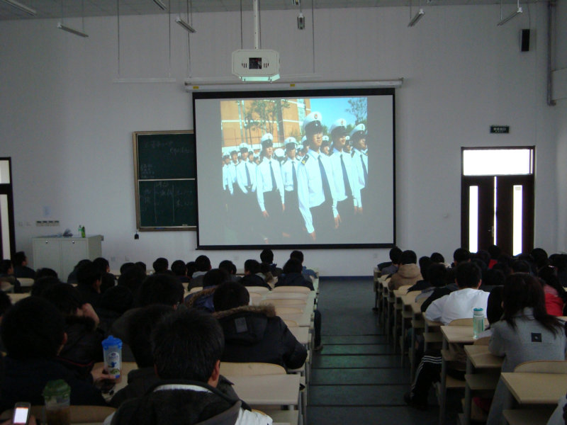 首先,王启福指导员通过一段视频与同学们共同回顾了我中队从入学至今所经历的各项活动。熟悉的照片,熟悉的面孔,动听的音乐让同学们回忆起了曾经的点点滴滴。迎新、军训、拉练、素质拓展训练、校庆演出、K歌大赛等一幕幕场景浮现在大家眼前。温馨而幸福的笑容出现在每一个人脸上,大家为能够在这样一个大家庭中学习生活而感到庆幸和自豪。