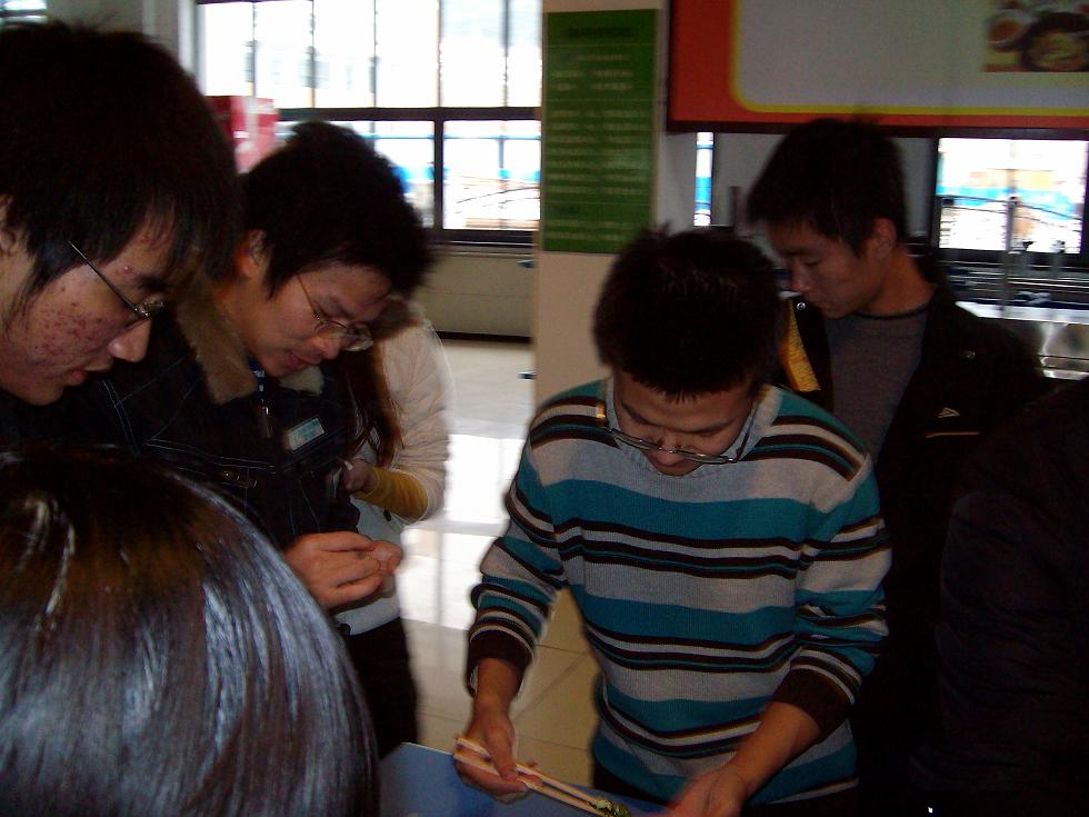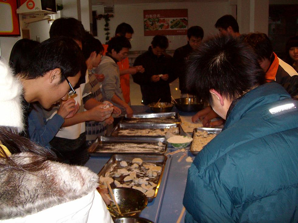 2009年12月31日下午,在09年的最后一天,临近新年的日子里,我院07中队的同学们用别样温馨的方式迎接新年的到来。 下午5点多,同学们来到海大五食堂,他们即将在这里体验了一顿极具意义晚餐,也借此向同学们表达节日的良好祝愿。 在中队的组织下,同学们开始举行此次活动的第一步-----包饺子。并非所有的同学都有过包饺子的经历,然而这并没有影响到活动的氛围,反而平添乐趣。同学们集体上阵,有的同学切面团,有的擀饺子饼,有的包,不会的同学则在一旁或认真学习,亲自实践,或制造笑料,营造气氛,很快预先准备的原料都已变成一个个浑圆鼓胀的饺子。此后等到饺子热腾腾的出锅,同学们都已迫不及待,赶忙动起手来。开饭了,大家享受着美味的食物,一起谈论节日的快乐,表达着祝福与祈愿,心里都有说不出的高兴。 通过此次活动,不仅增进了交流同学之间的友谊,带给了同学们节日的快乐,弥补了大家不能与自己家人一起欢度节日的遗憾,也在很大程度上增强了同学们自立生活的能力,对大学的独立生活有很大的进步。活动的宗旨是让交流所有的同学们自已动手,营造出交流07中队家的温暖。