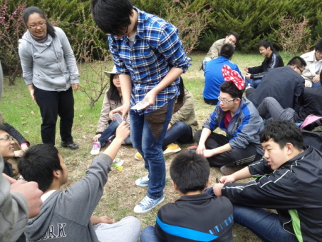 经过了半个小时的旅程,在导游的带领下,学生来到了旅顺龙王塘,春暖花开,樱花朵朵都开得灿烂…….大家沿着小路走,观赏着周边的景色享受着这一切,享受着春的来临。中午,同学们来到了一个酷似骰子的花丛中,开始了野餐,同时,杀人游戏,三国杀,踢毽子等趣味活动一并展开了,不过其间最奇特的活动莫过于攀岩了,这实属勇敢者的游戏,但是许多同学毫不犹豫的上墙,大家最终在攀岩到墙上后共同合影留念。