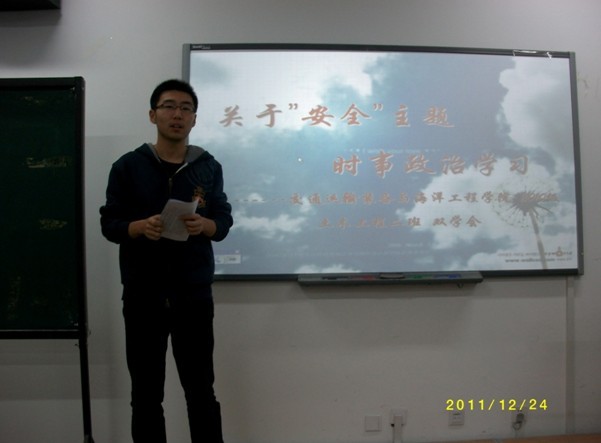 作为大学生,我们的思想愈趋成熟,对某些社会问题的思索更加深入。借12月24日双学班会,10级土木工程2班以社会上的一些热点“时事”引发同学们对安全问题的思考。
