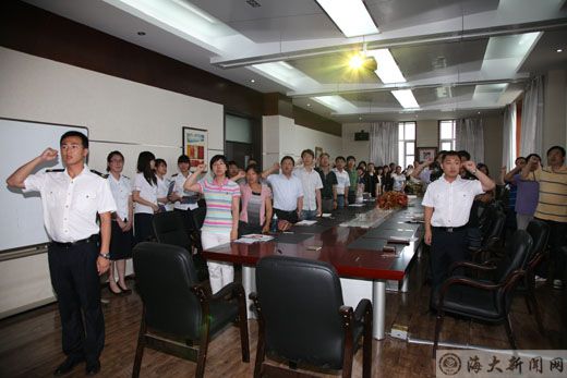 全体党员在庄严的党旗下重温入党誓词后,观看了中央党校党建教研部张晓燕教授主讲的《深入学习和贯彻党章,增强党性修养》教学视频。