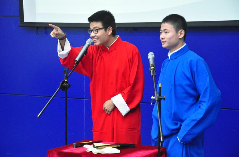 团委成立了面向全校师生的相声社——“海乐相声社”。社团成立以来,不仅举行了多次演出专场,更在相声创作、表演的过程中培养了学生的创新精神,促进学生全面发展。