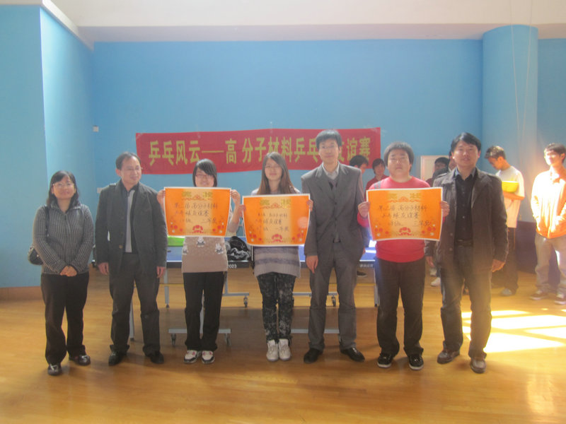 高分子材料专业的特色活动,于每年的四月份举行,今年是第二届。参加本次活动的有高分子材料08级、09级、10级的同学,同学们都积极踊跃的报名,几乎各个班级的每个同学都参与到了此次比赛中。本届比赛设有男单,女单,男双,混双四种比赛形式,并根据每项比赛的积分累积计算团体一二三名。最终高分子材料系09级获得了本次友谊赛的团体第一名。