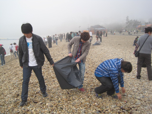 上午九点,同学们在新区门口集体出发,前往活动目的地——星海公园。晴好的天气,风和日丽,让同学们心情格外愉悦。在海边环卫工人的热情帮助下,同学们自觉分组,有条不紊地开始了今天的环保活动。不少在场的游客看到同学们的行动,投以极大兴趣并踊跃参与到活动中来。最后在大家的努力下,海边垃圾少了许多,沙滩也变得更加干净漂亮。拎着一袋袋拾起的垃圾,同学们体验到了收获的喜悦,感受到了劳动的光荣。