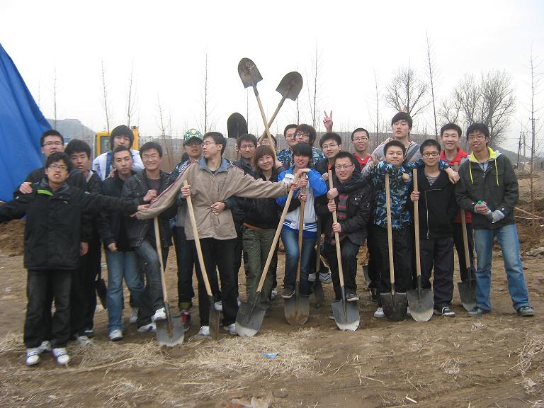 09中队救助与打捞工程专业的同学们怀着激动的心情来到了位于辛寨子街道前革村的林业基地参加植树活动。