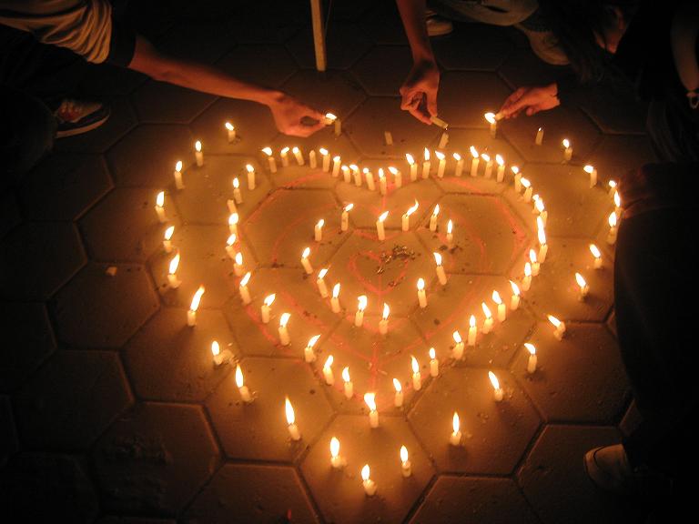 中午时分,救助与打捞工程班级的同学在四餐厅门口展开了数米长的条幅,过往的同学都陆陆续续在条幅上签下了自己的名字,表达自己对玉树关切的情思。晚上八点半,救助与打捞工程专业的同学们又在校园的林荫路上摆放了白蜡,组成一个心型,组织过往同学亲手点亮那一盏盏烛灯,为玉树祈福。旁边,巨型屏幕上放映着有关玉树的新闻,在为同学们带来最新资讯的同时,体现了中华民族一方有难八方支援的抗震救灾精神。看着屏幕上的新闻,有的同学甚至流下了激动的泪水……随着一盏盏孔明灯的放飞,同学们对玉树的思念之情、关切之心也飞向了远空,消失于天际。